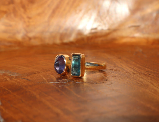 Twin Stone Ring in 18k Yellow Gold
